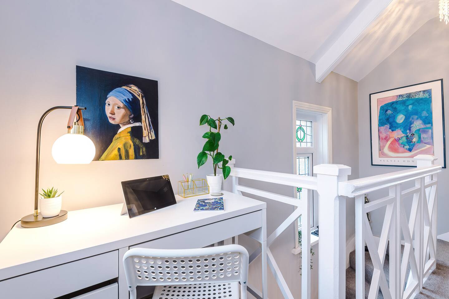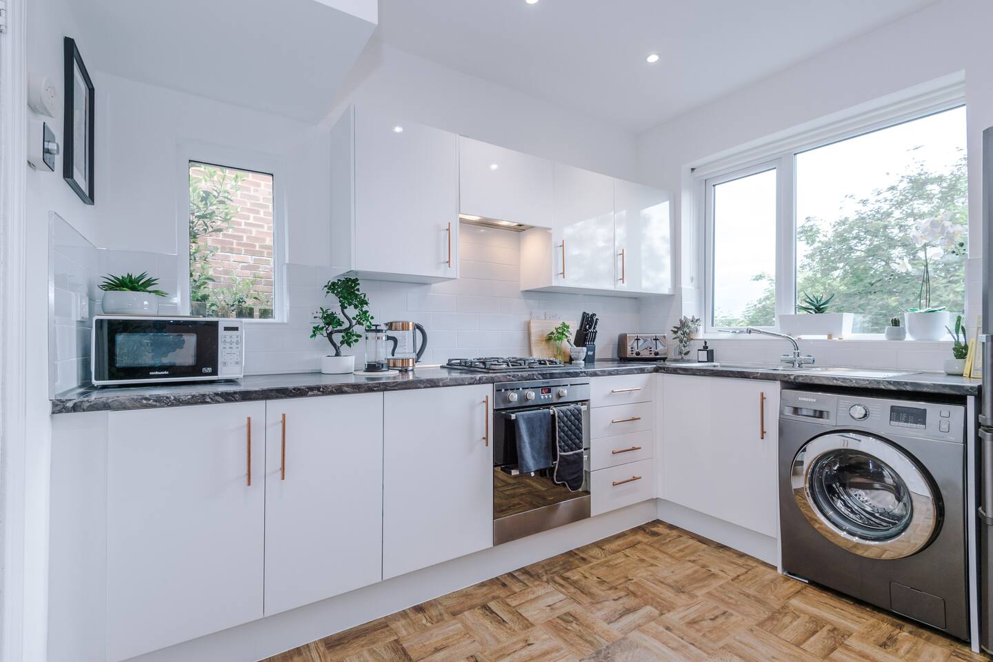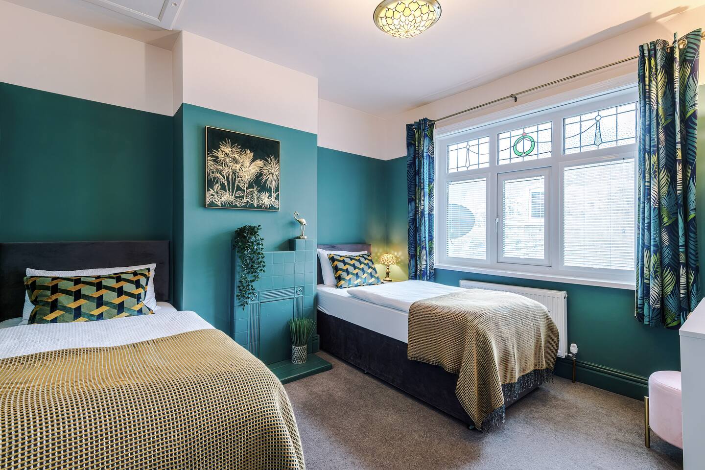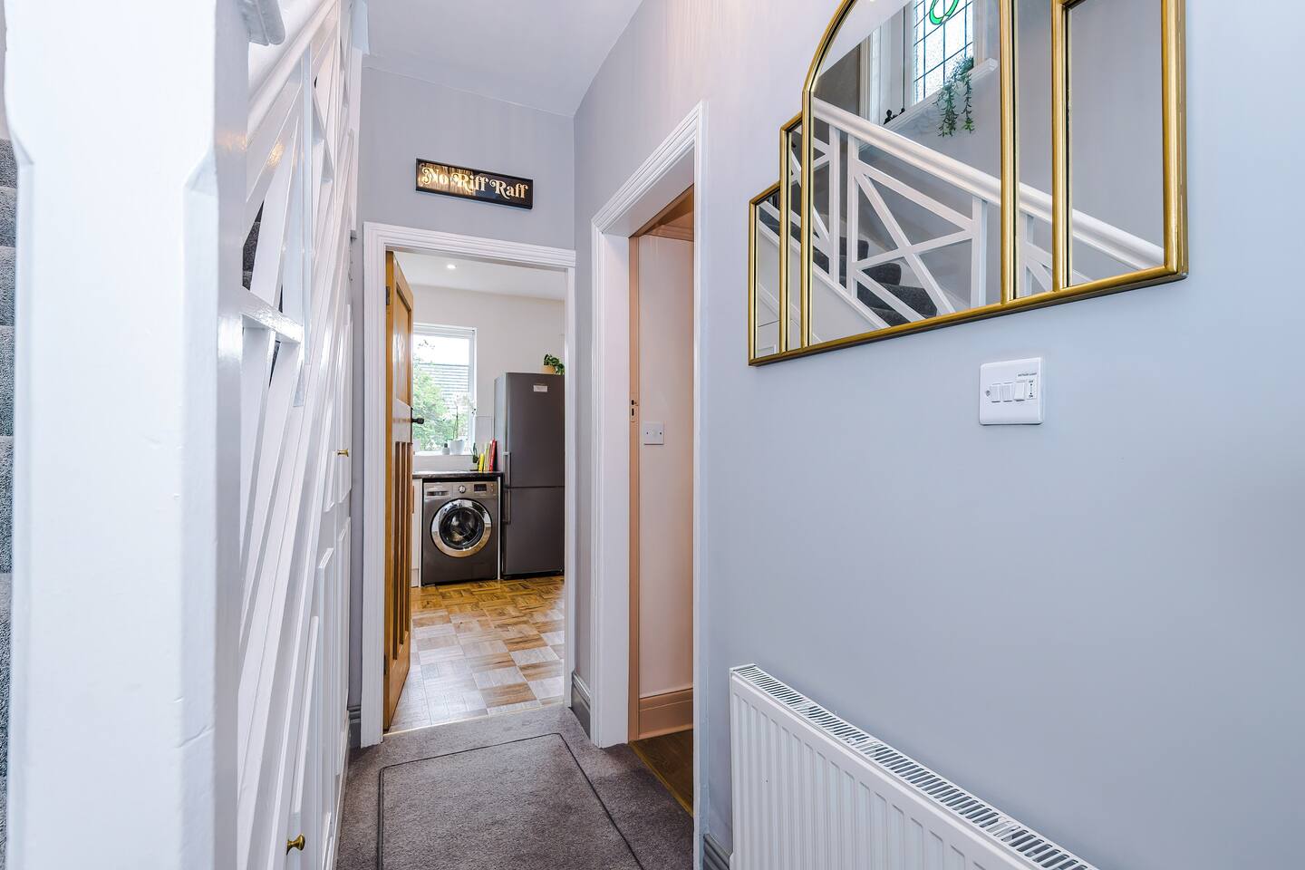 Situated only a 10 minute walk from the city centre of Durham, this 2BDR property is a 1930s semi which has been fully renovated in 2020 in an art deco style, preserving traditional English features and original stain glass windows, encased in new double glazing to keep the place warm. The house has a warm and cosy feel to it, with a light and spacious, fully equipped kitchen and dining area, from where you can also access a private patio. Then there is also a living room on the ground floor, featuring the original stained glass windows and a unique fireplace. On the first floor, you will find two good sized bedrooms (king size bed and two singles) with a bathroom. There is also a small study area on the landing. We provide all the linens, towels, and toiletries you need to make your stay comfortable and hassle-free. Parking There is a car space for one car in the driveway as well as plenty of street (metered) parking if extra parking is needed.